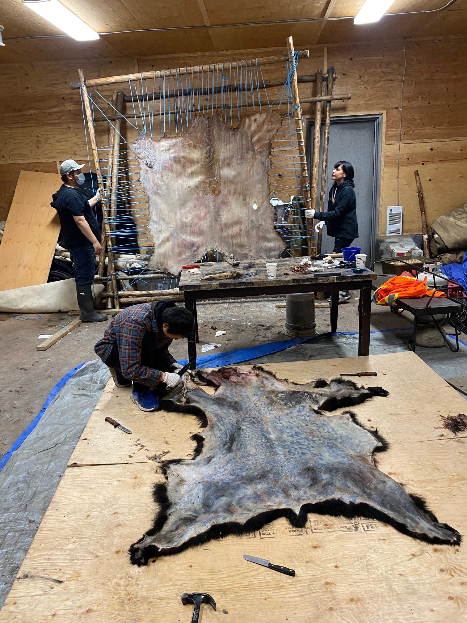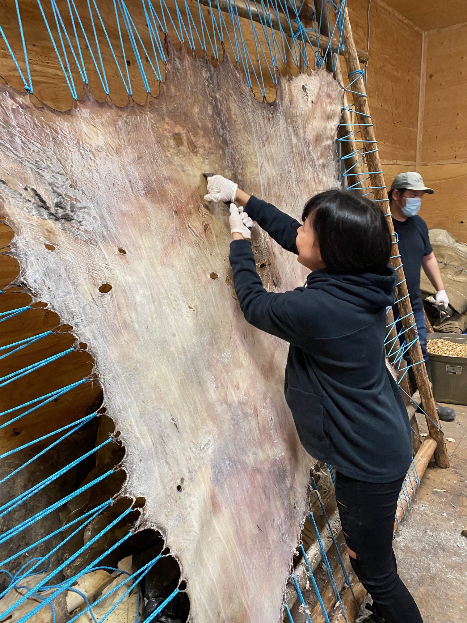 As time goes on, technology evolves, the craftsmanship remains the best as Knowledge Keepers teach the young ones the beauty of preparing traditionally, like the elders have taught them before. Perfection is required, and appreciation grows and grows as time and patience are needed when tanning and preparing hides. Continuous scraping/cleaning, stretching, soaking, and ringing of hides for preparation to be made into tipis, clothing, cooking, storing, and accessories.